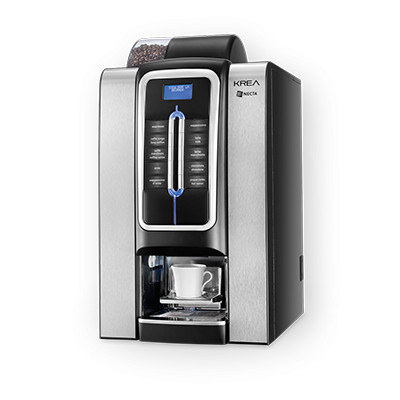 A Krea é a solução ideal para hotéis, espaços comunitários, locais com self-service e completa a gama de soluções de pequeno-almoço da Necta. O design moderno e elegante é valorizado por luzes LED, botões de pressão e uma moldura em redor da área de seleção cromados e elegantes painéis gráficos laterais. Isto representa uma das muitas características da Krea, juntamente com o facto de que a capacidade do funil para o café e do recipiente de resíduos serem perfeitamente equilibrados, para garantir o mais elevado nível de eficiência operacional.